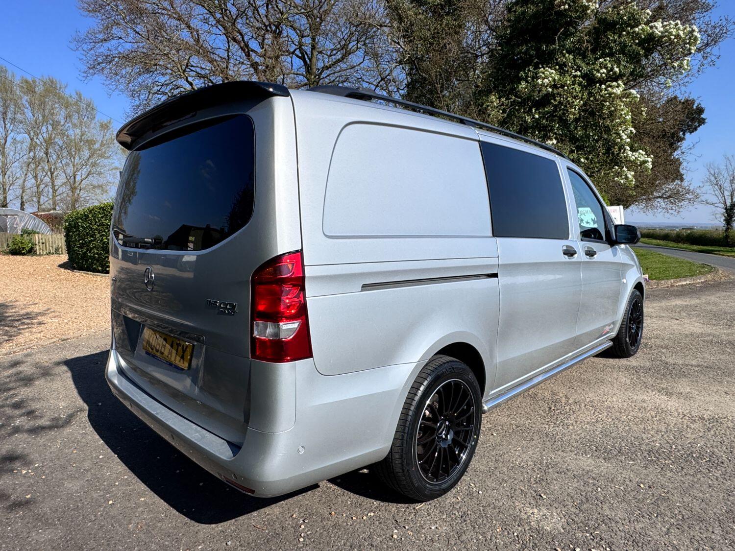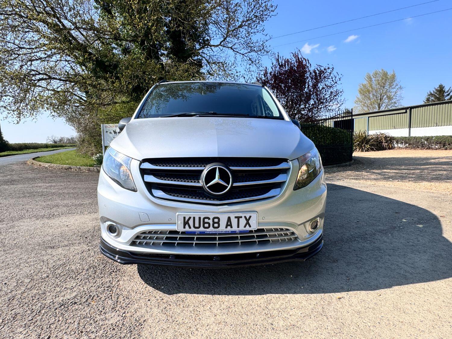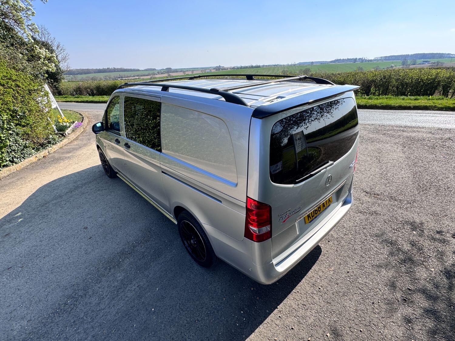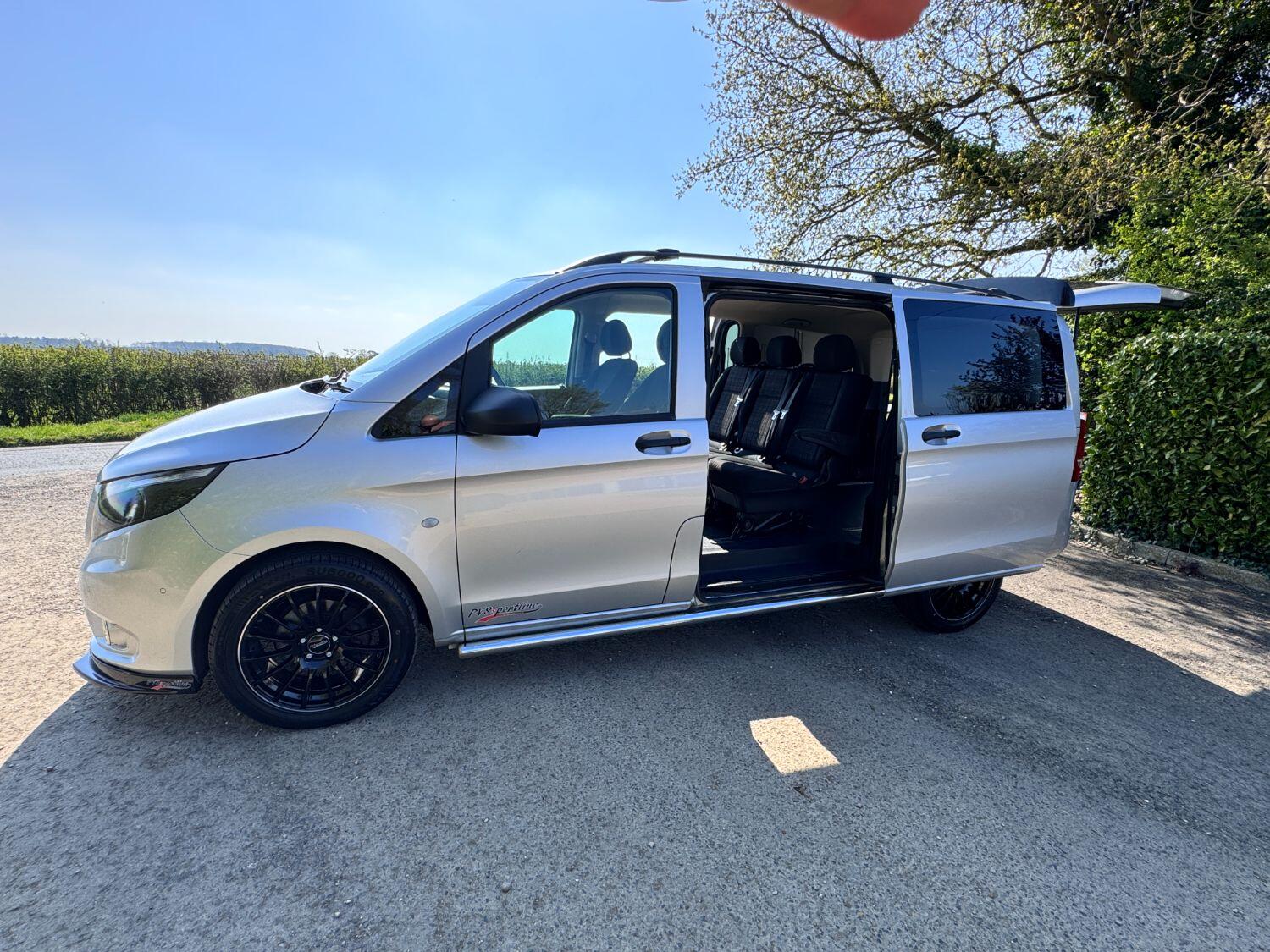 Welcome to our exceptional 2018 Vito Sport Crew Cab Van PVSsportline, a stylish and practical multi use vehicle, Benefiting From Our PVSsportline Upgrades: Brand New 18" Gloss Black Alloy Wheel & Tyre Package, Front Splitter and Rear Spoiler, Presented in Brilliant Silver, with Mercedes and 1 company owner from new powered by Mercedes trusted 2.1L diesel engine, running through G-Tronic+ automatic transmission, providing a smooth and efficient driving experience. With premium Sport trim features Including: Air Conditioning, cruise control, reverse assist camera, front/rear parking sensors with indicators, bluetooth connectivity, exterior pack including 17" alloy wheels, chrome side bars, colour coded bumpers 7 side trim, rear tailgate + MUCH MORE