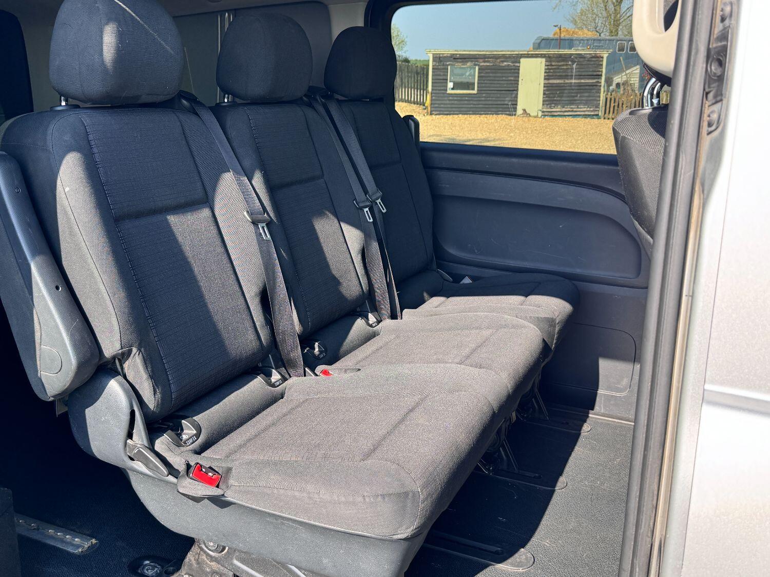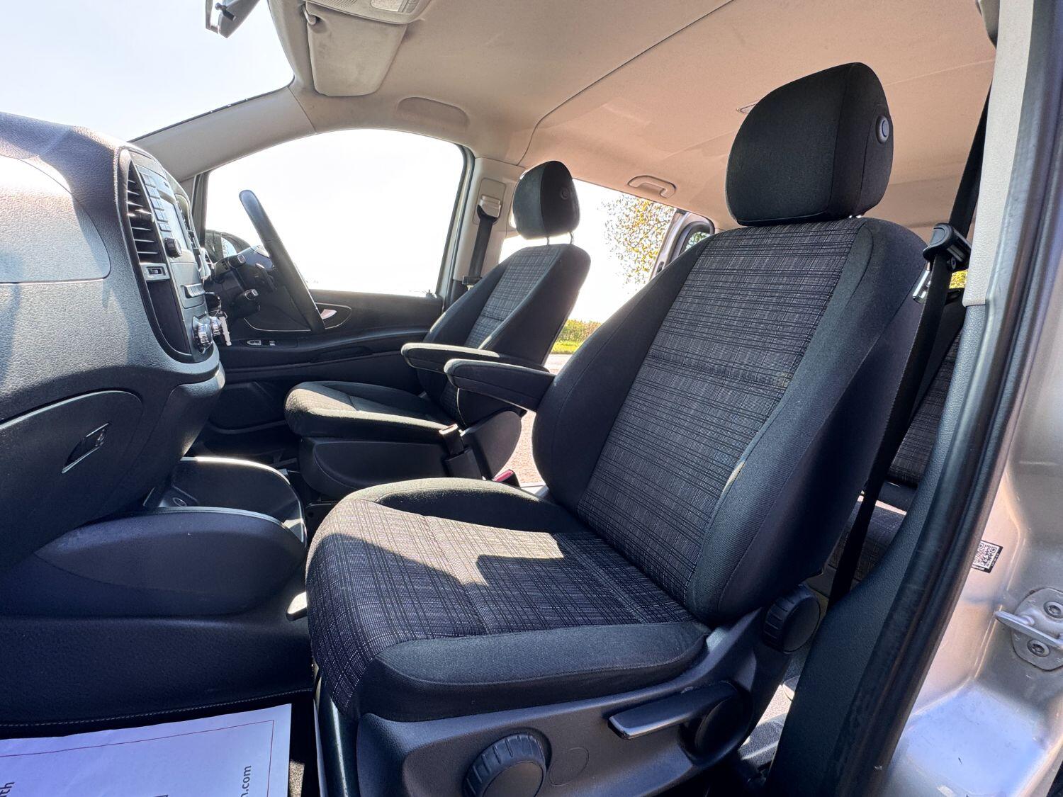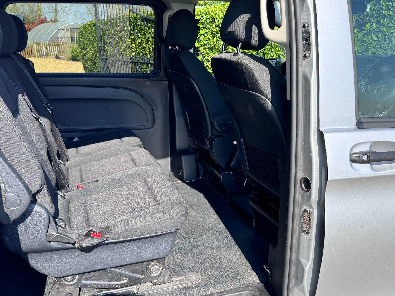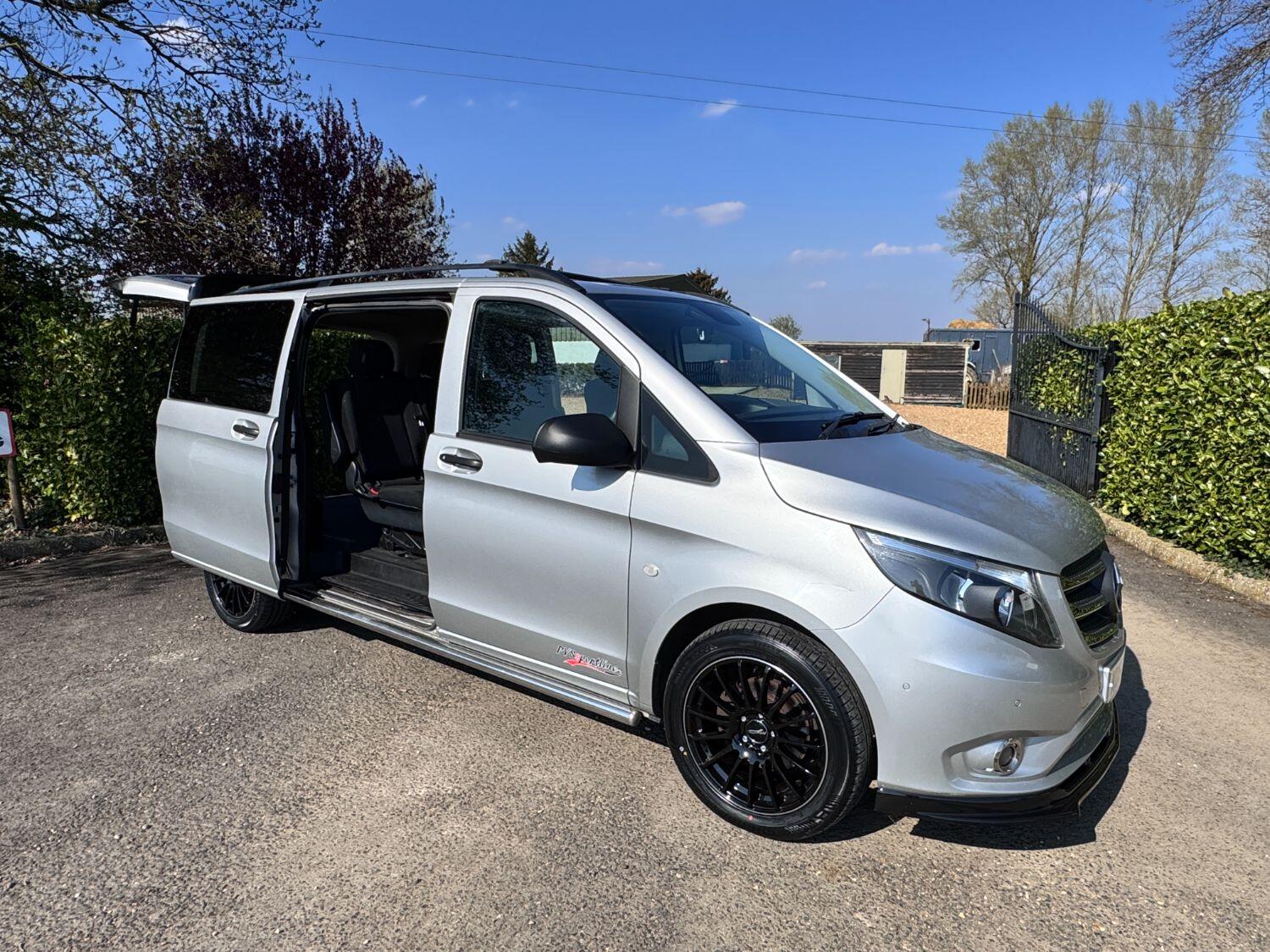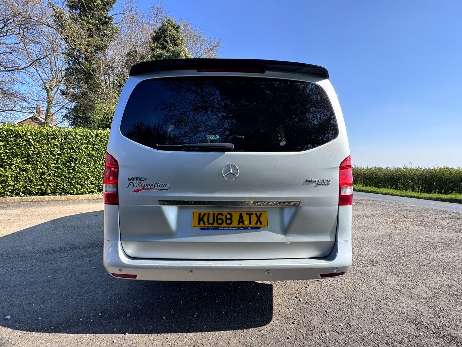 Welcome to our exceptional 2018 Vito Sport Crew Cab Van PVSsportline, a stylish and practical multi use vehicle, Benefiting From Our PVSsportline Upgrades: Brand New 18" Gloss Black Alloy Wheel & Tyre Package, Front Splitter and Rear Spoiler, Presented in Brilliant Silver, with Mercedes and 1 company owner from new powered by Mercedes trusted 2.1L diesel engine, running through G-Tronic+ automatic transmission, providing a smooth and efficient driving experience. With premium Sport trim features Including: Air Conditioning, cruise control, reverse assist camera, front/rear parking sensors with indicators, bluetooth connectivity, exterior pack including 17" alloy wheels, chrome side bars, colour coded bumpers 7 side trim, rear tailgate + MUCH MORE