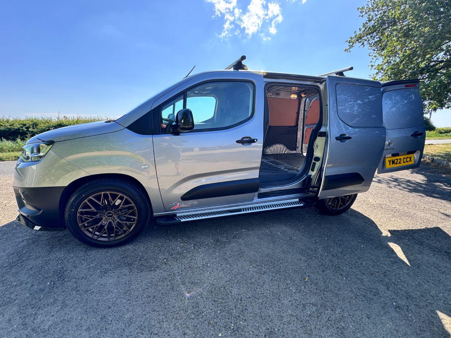 Welcome To Another Of Our PVSsportline Edition Proace, ULEZ Compliant, Presented In Silver Shadow, 1 Owner From New, Full Service History, 2 Remote Keys, Features Include: Brand New 18" Alloy Wheel & Tyre Package (XL Rated For Commercial Use) Front Bumper Splitter, Side Steps, Ply Lining, Cruise Control, Air Conditioning, Reverse Camera, Front/Rear Parking Sensors, Power Fold Door Mirrors, DAB Radio, Apple/Android Car Play + Much More.